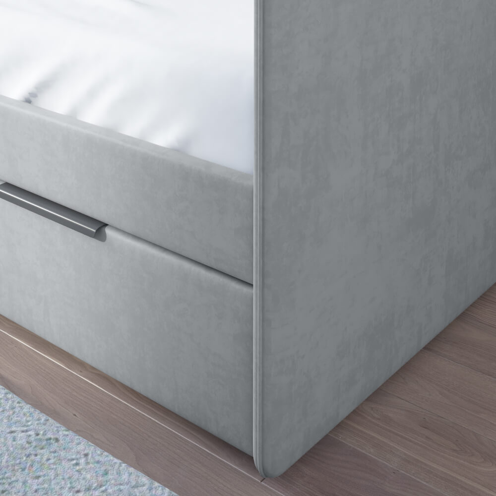 Детская кровать ELLA 2 с вертикальной строчкой и выдвижным ящиком сочетает в себе функциональность, стиль, удобство и комфорт, делая ее отличным выбором для детской комнаты.