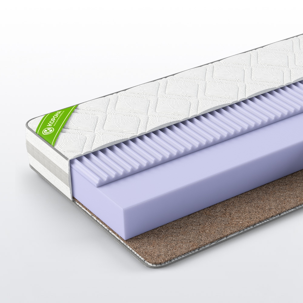 Наиболее популярная модель в серии. Использование ортопедической пены высокой плотности позволяет выдерживать нагрузку до 130 кг на спальное место. При этом матрас будет отлично поддерживать позвоночник и сохранять свою форму длительное время без деформации и проседания материалов. На выбор две стороны - одна с массажной пеной будет иметь умеренную жесткость, а сторона с кокосовой койрой - высокую степень жесткости.
